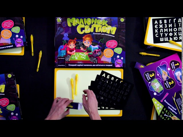 Двосторонній планшет для творчості «Малюнок світлом» призначений для навчання та розвитку творчих здібностей, а також розвитку пам'яті, уяви та фантазії. Але одне з головних переваг набору «Малюй світлом» полягає в його трафаретах, за допомогою яких дитина зможе в цікавій ігровій формі малювати букви, що будуть світитися, складати слова та вчити українську та англійську абетку, а також вчити цифри та знаки.